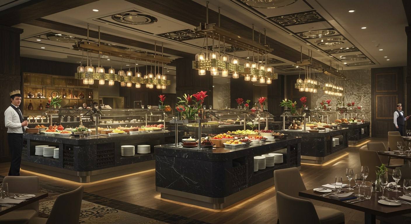 الوصف: تجربة طعام متكاملة وفاخرة جدًا تشمل كل ما سبق مع عروض طهي حية، تقديم شخصي، قاعة مجهزة بالكامل.